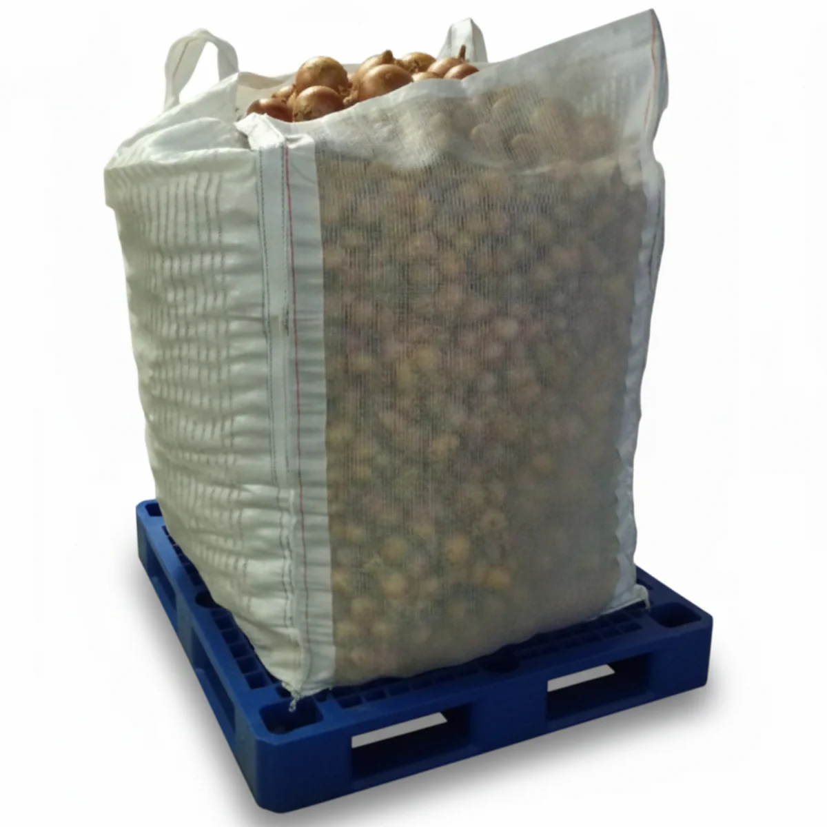 Ventilated FIBC bags (also known as mesh FIBC bags or breathable bulk bags are specifically designed with porous mesh fabric that allows optimal air circulation. These bags are ideal for products that require moisture control and proper ventilation during storage and transport.